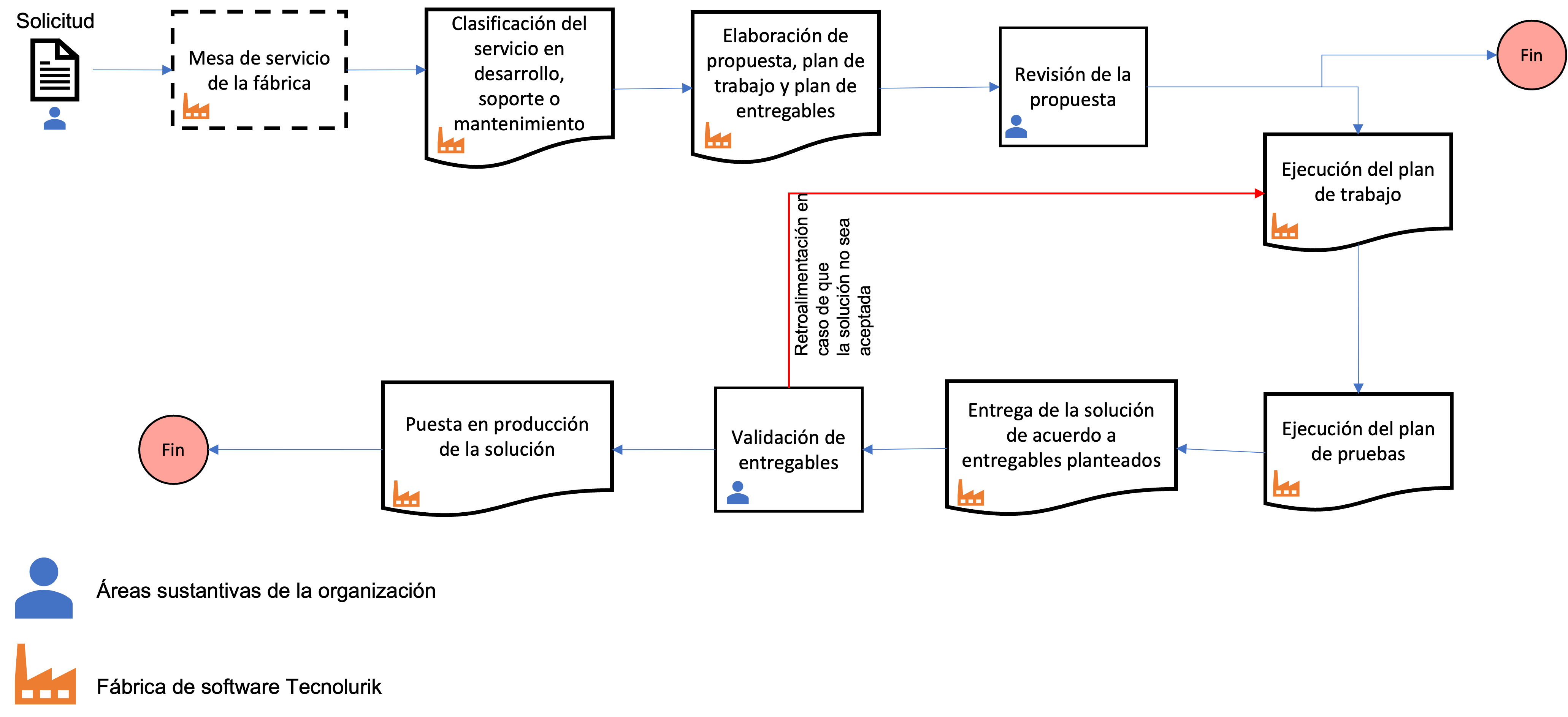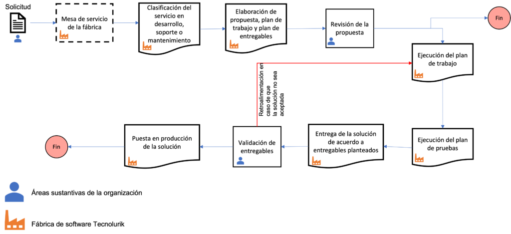 Nuestra fábrica de software se desempeña en 6 ejes principales: